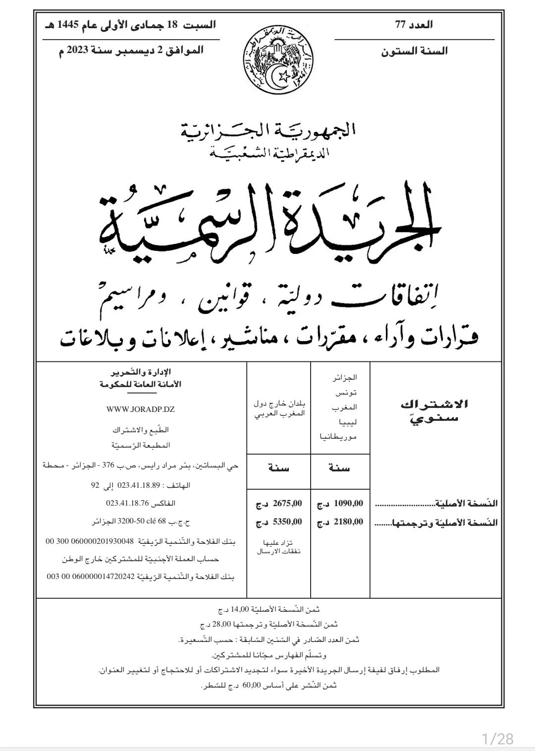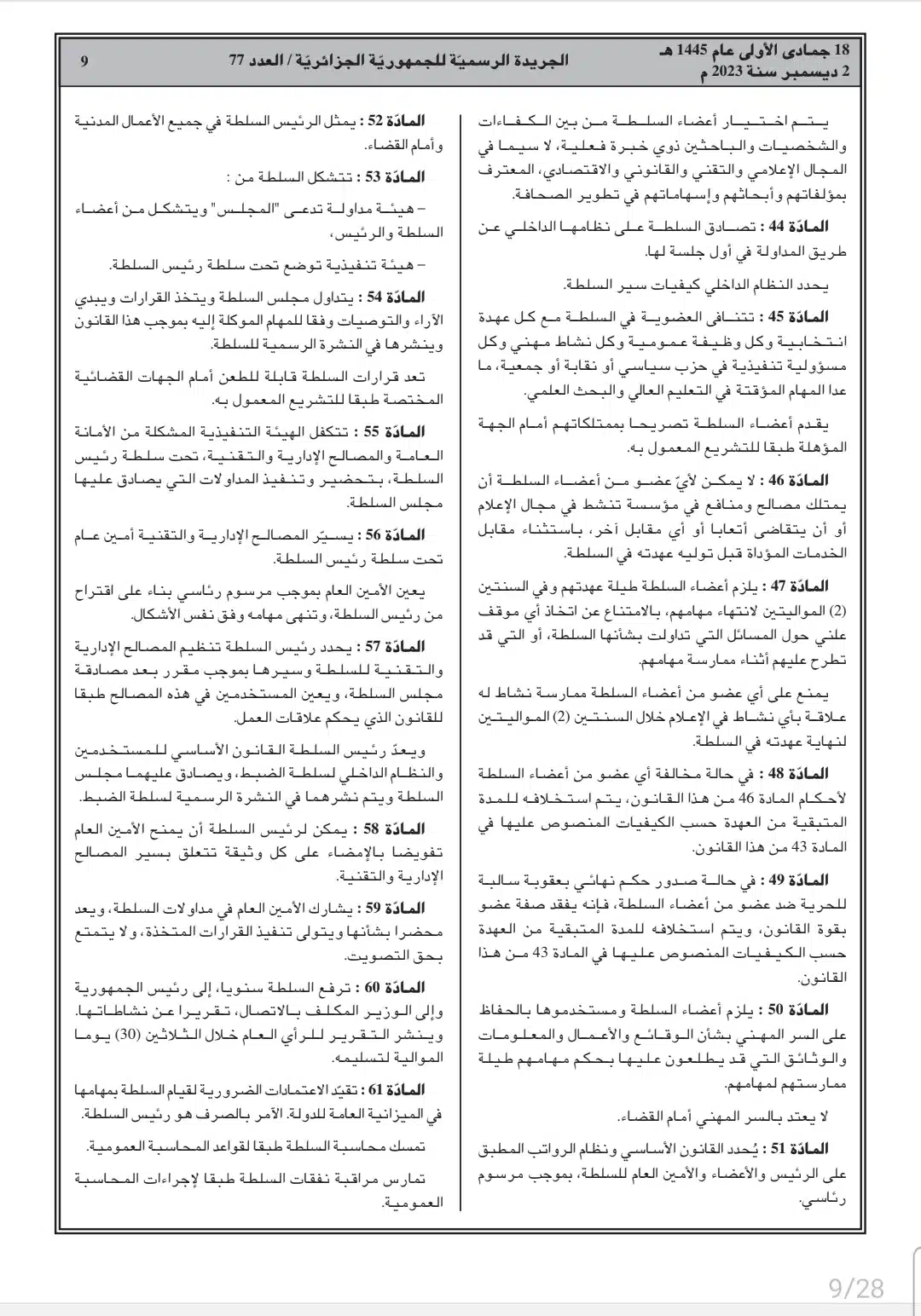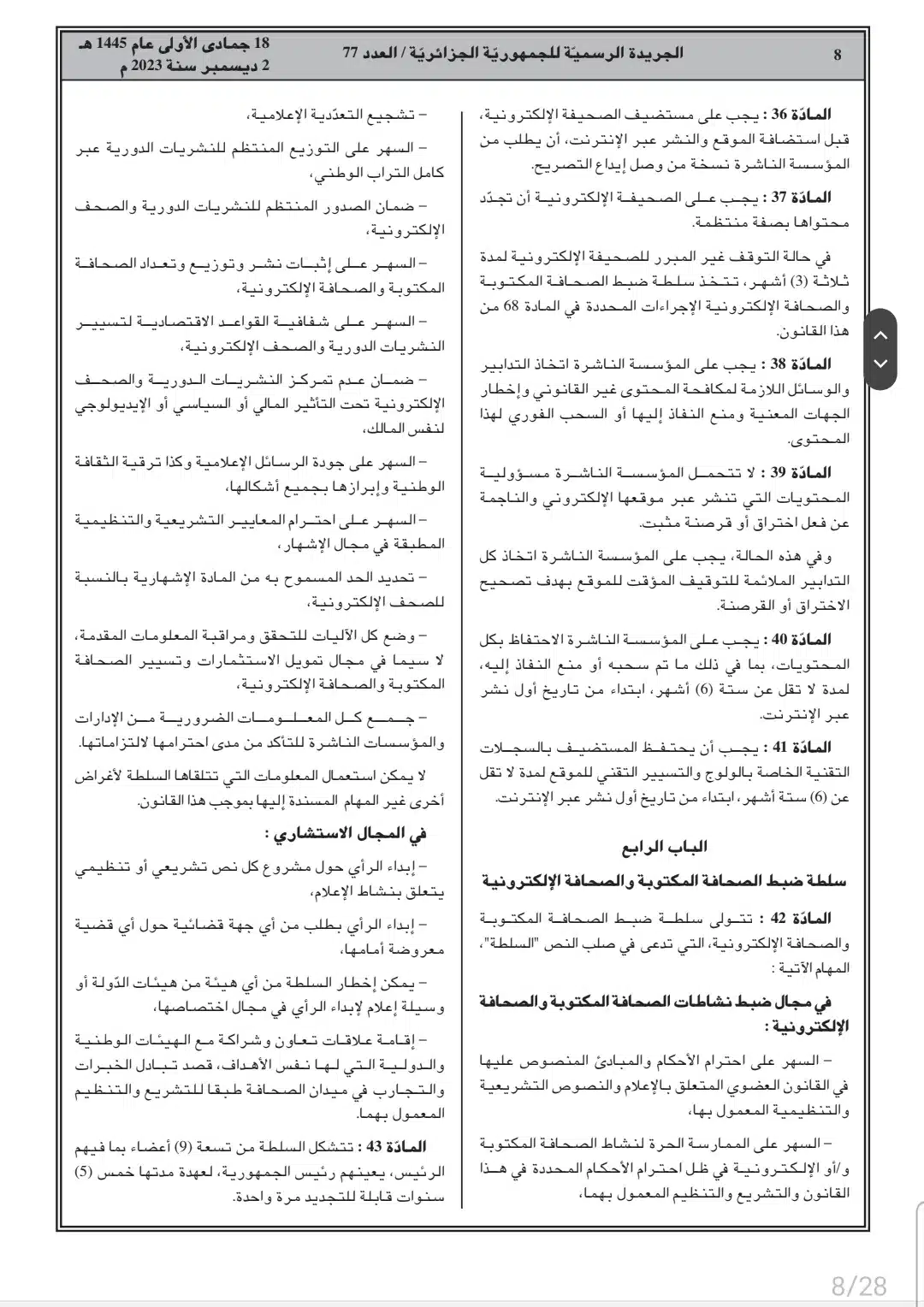 الجريدة الرسمية: صدور قانون الصحافة المكتوبة والصحافة الإلكترونية ونشاط السمعي البصري