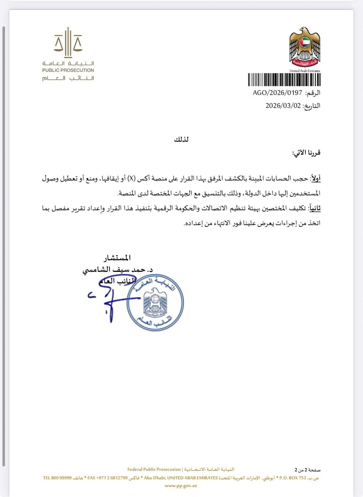 أصدرت النيابة العامة في الإمارات قرارًا يقضي بحجب عشرات الحسابات على منصة “X” داخل البلاد، في إجراء قمعي يستهدف تقييد تدفق المعلومات وفرض رقابة مشددة على الخطاب العام في الفضاء الرقمي، في قرار يعكس حالة التخبط في أبوظبي.