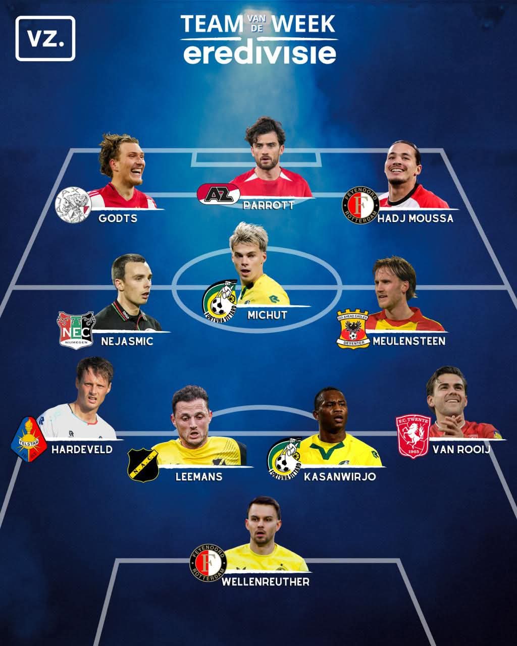 و اليكم التشكيلة المثالية للجولة 24 من الدوري الهولندي :