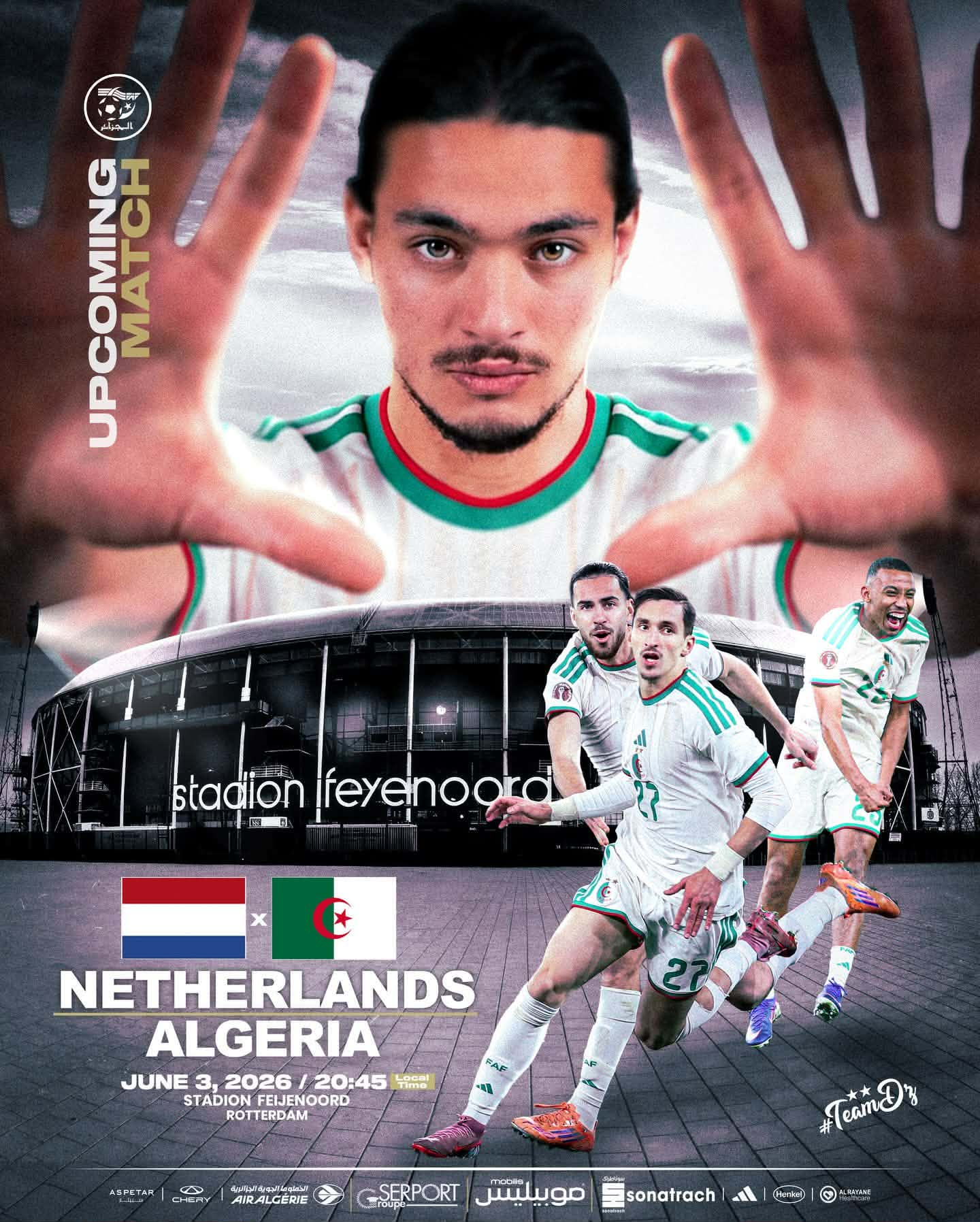 أعلن الإتحاد الجزائري لكرة القدم رسميا عن برمجة مباراة ودية أمام منتخب هولندا خلال شهر جوان المقبل تحضيرا لنهائيات كأس العالم 2026.