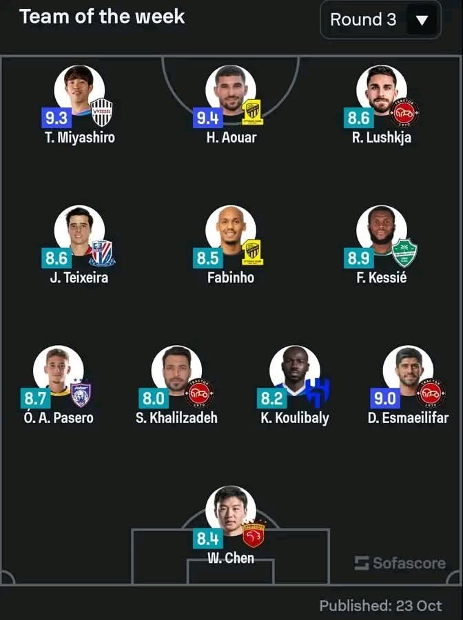 و اليكم التشكيلة المثالية للجولة الثالثة من دوري أبطال أسيا للنخبة :