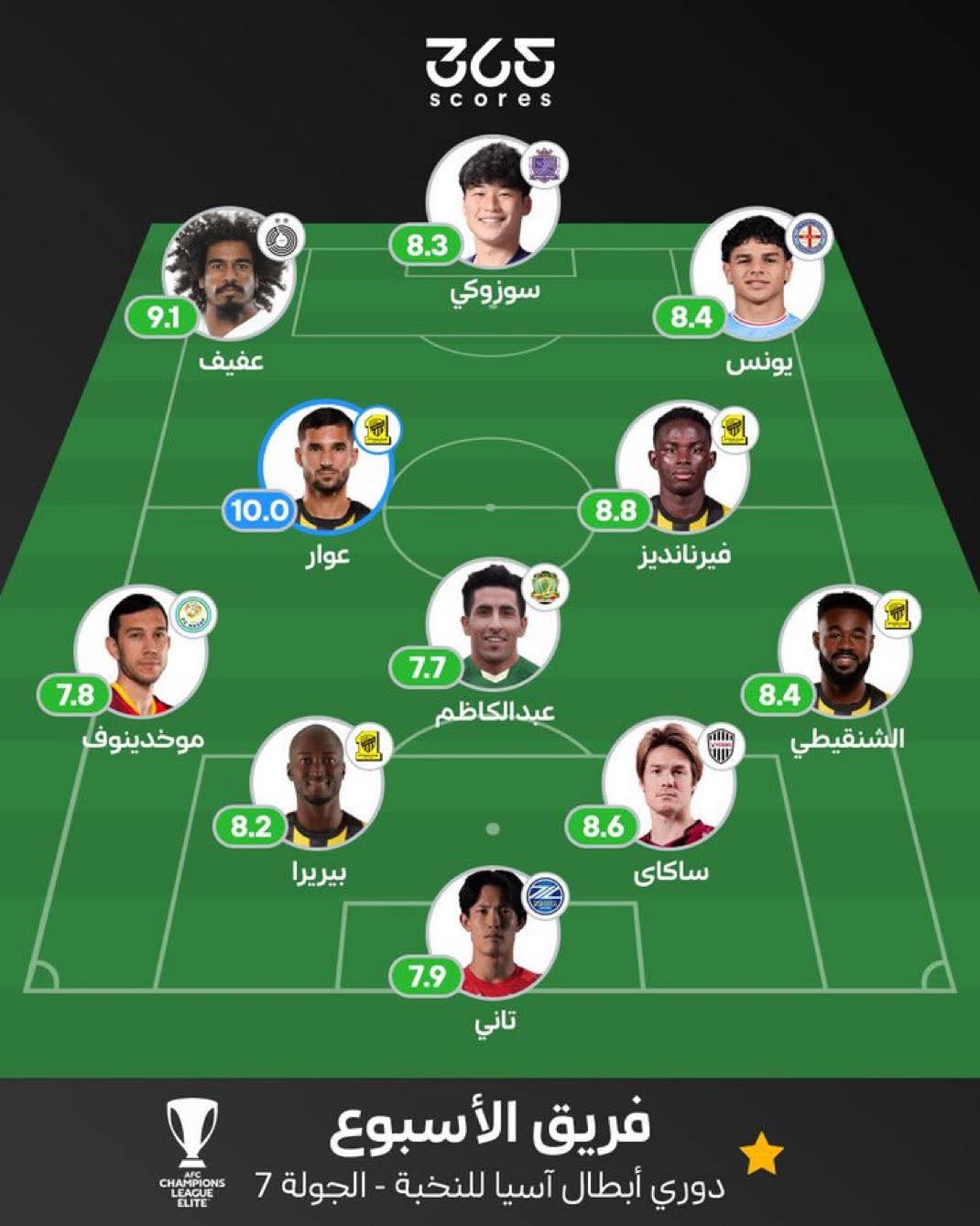 و اليكم التشكيلة المثالية للجولة السابعة من مسابقة دوري أبطال أسيا للنخبة :