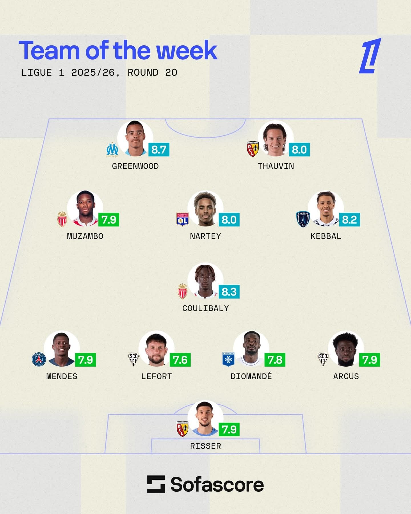 و اليكم التشكيلة المثالية للجولة ال20 من الدوري الفرنسي الليغ1 :