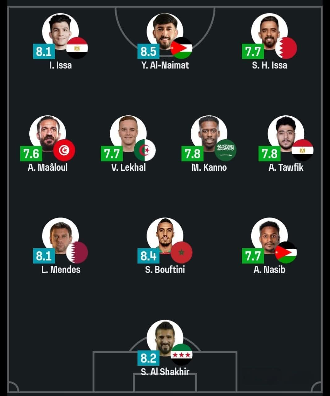 و اليكم التشكيلة المثالية للجولة الاولى من بطولة كأس العرب :