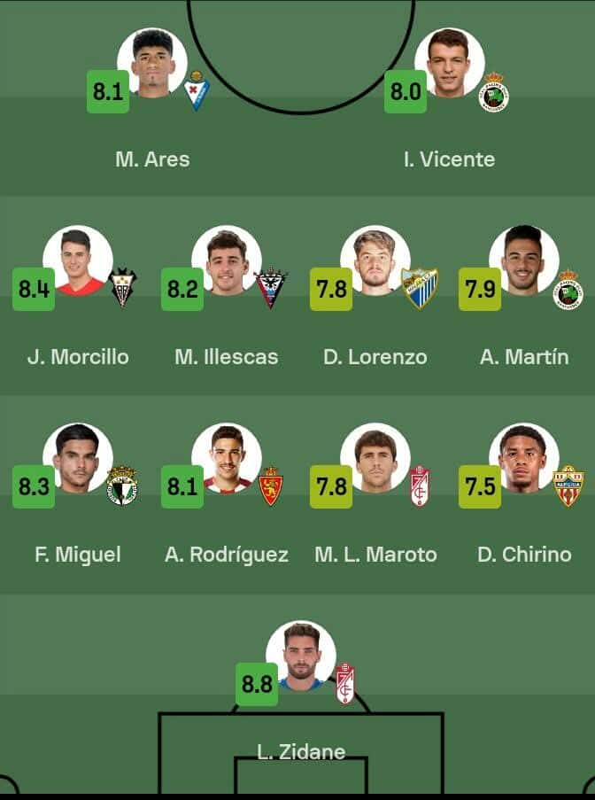 و اليكم التشكيلة المثالية للجولة السابعة من الدوري الاسباني درجة ثانية :