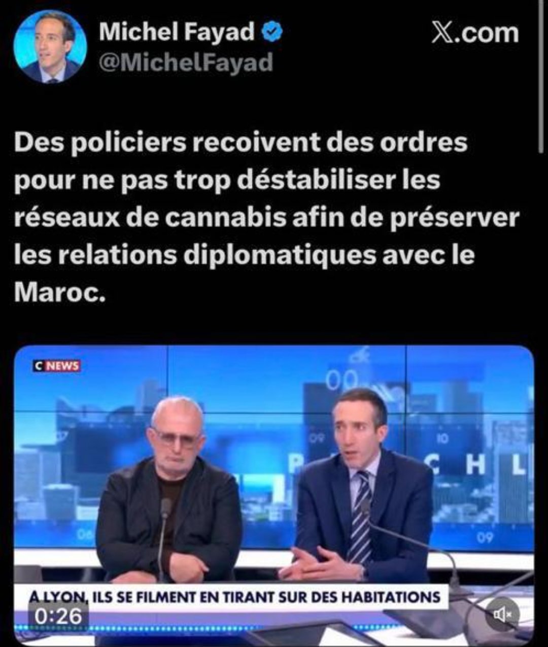للإشارة، فإن ميشال فايد يظهر بانتظام في برامج سياسية على القنوات الفرنسية، من بينها CNews التي أطلق من خلالها هذا التصريح حول شبكات القنب المغربية.
