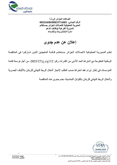 العميل: المديرية العملياتية لاتصالات الجزائر بمستغانم.
