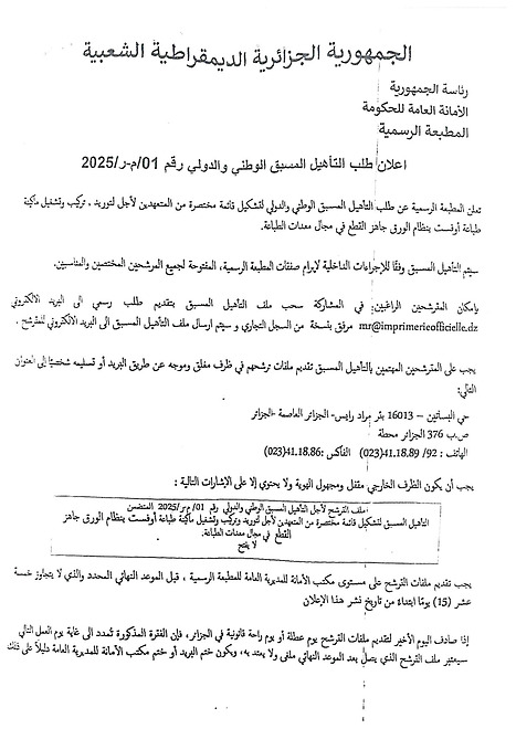 العميل: رئاسة الجمهورية – الأمانة العامة للحكومة – المطبعة الرسمية