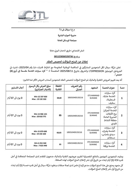 النوع: إعلان عن طلب عروض وطني مفتوح مع اشتراط قدرات دنيا