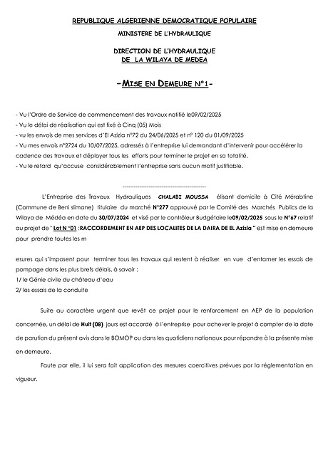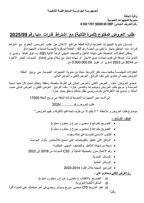 العميل: مديرية التجهيزات العمومية لولاية الجلفة