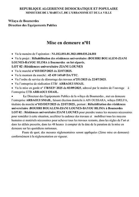 الموضوع: إعادة تأهيل الإقامة الجامعية زياني لوناس ببومرداس (الحصة 02)