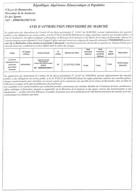 العميل: مديرية الشباب والرياضة لولاية بومرداس