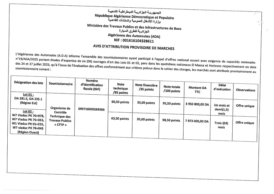 العميل: مديرية التجهيزات العمومية لولاية تيزي وزو