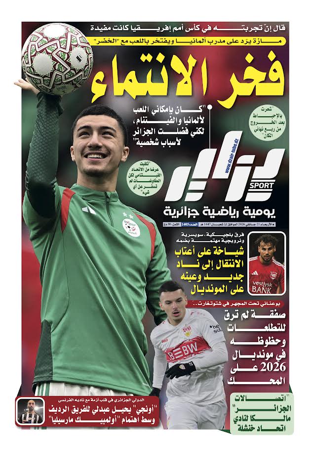 النسخة الورقية لجريدة دزاير سبور ليوم يوم 12 نوفمبر 2024 – العدد 1099 تاريخ النشر: 11 نوفمبر 2024 تحميل العدد (PDF)