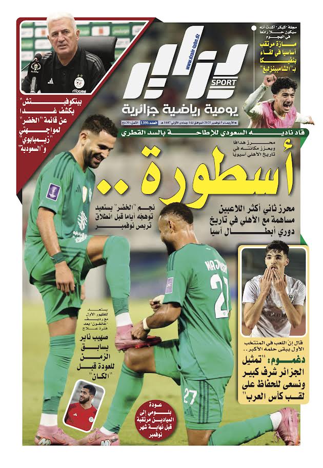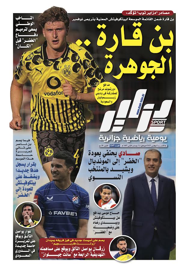 النسخة الورقية لجريدة دزاير سبور ليوم يوم 03 فيفري 2025 – العدد 1156 تاريخ النشر: 3 فبراير 2025 تحميل العدد (PDF)